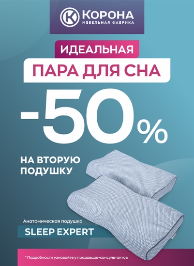 Скидка 50% от РРЦ на 2-ю подушку «Sleep Expert» 57*37*11 при покупке в одном чеке с 01.07.25 - 30.11.2025 г.