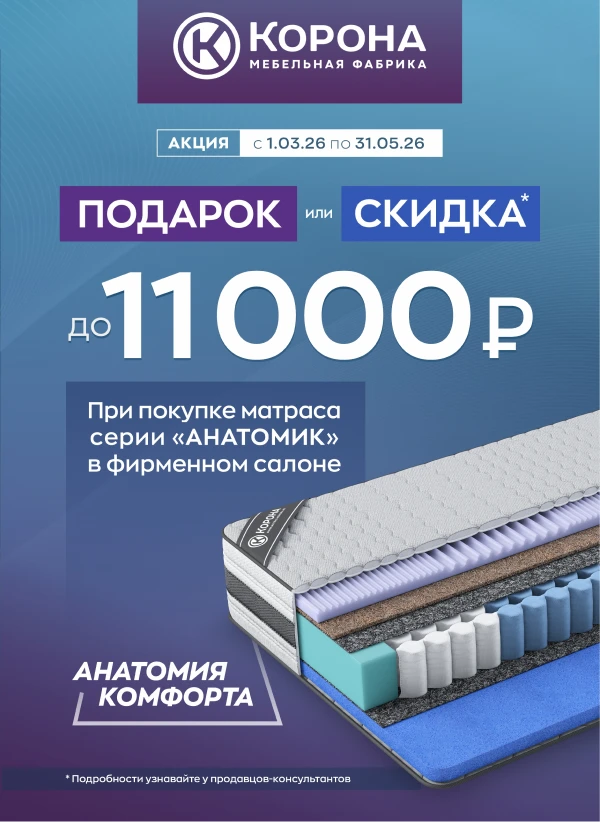 —При покупке матраса серии «Анатомик» дарим подарок или скидка на выбор!